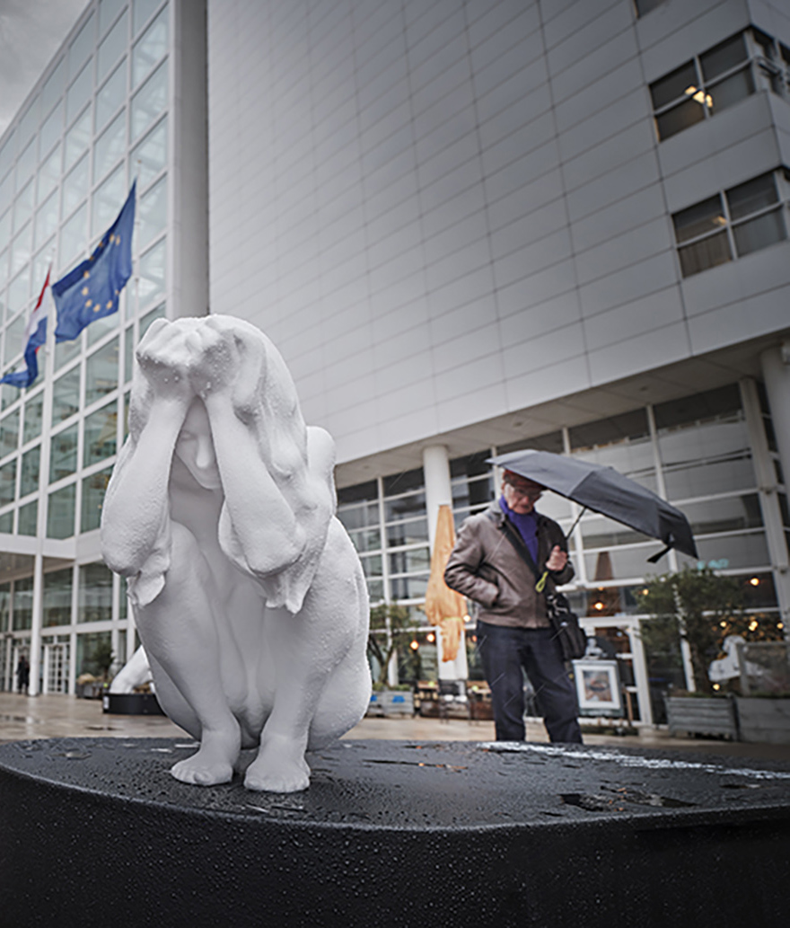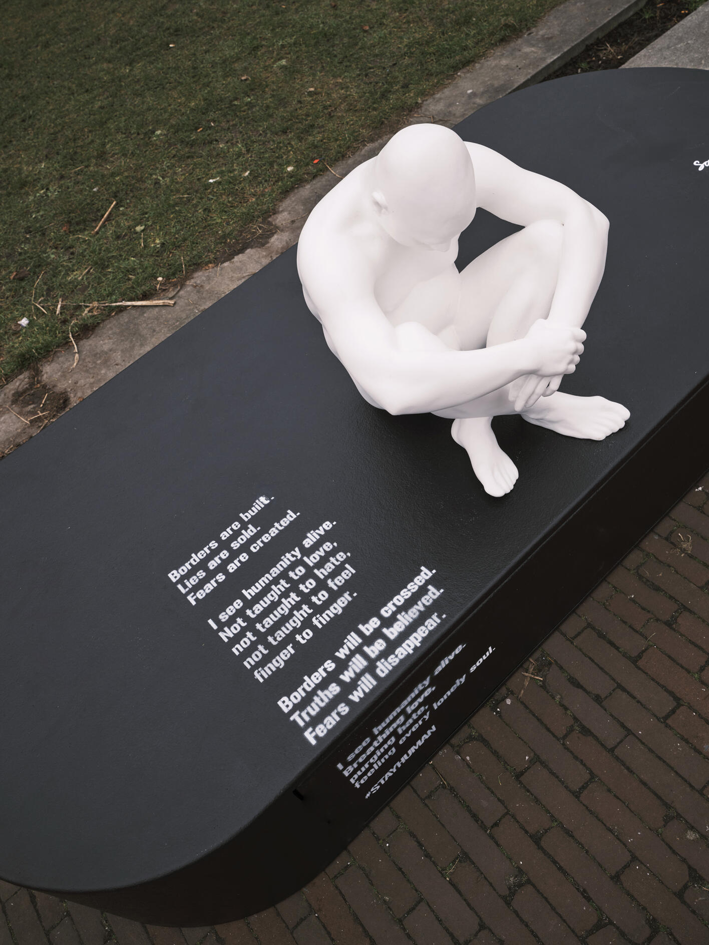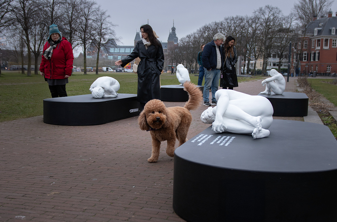 Het reizende kunstproject #StayHuman van kunstenaar SAZZA biedt een ander perspectief. Waar mensen vaak worden teruggebracht tot een label, een mening of een kamp, laten deze sculpturen het tegenovergestelde zien: de mens in zijn puurste, meest kwetsbare vorm — zonder status, zonder masker, zonder bescherming. Ze vormen een indringende oproep om de menselijkheid te blijven zien, juist nu de menselijke maat onder druk staat.