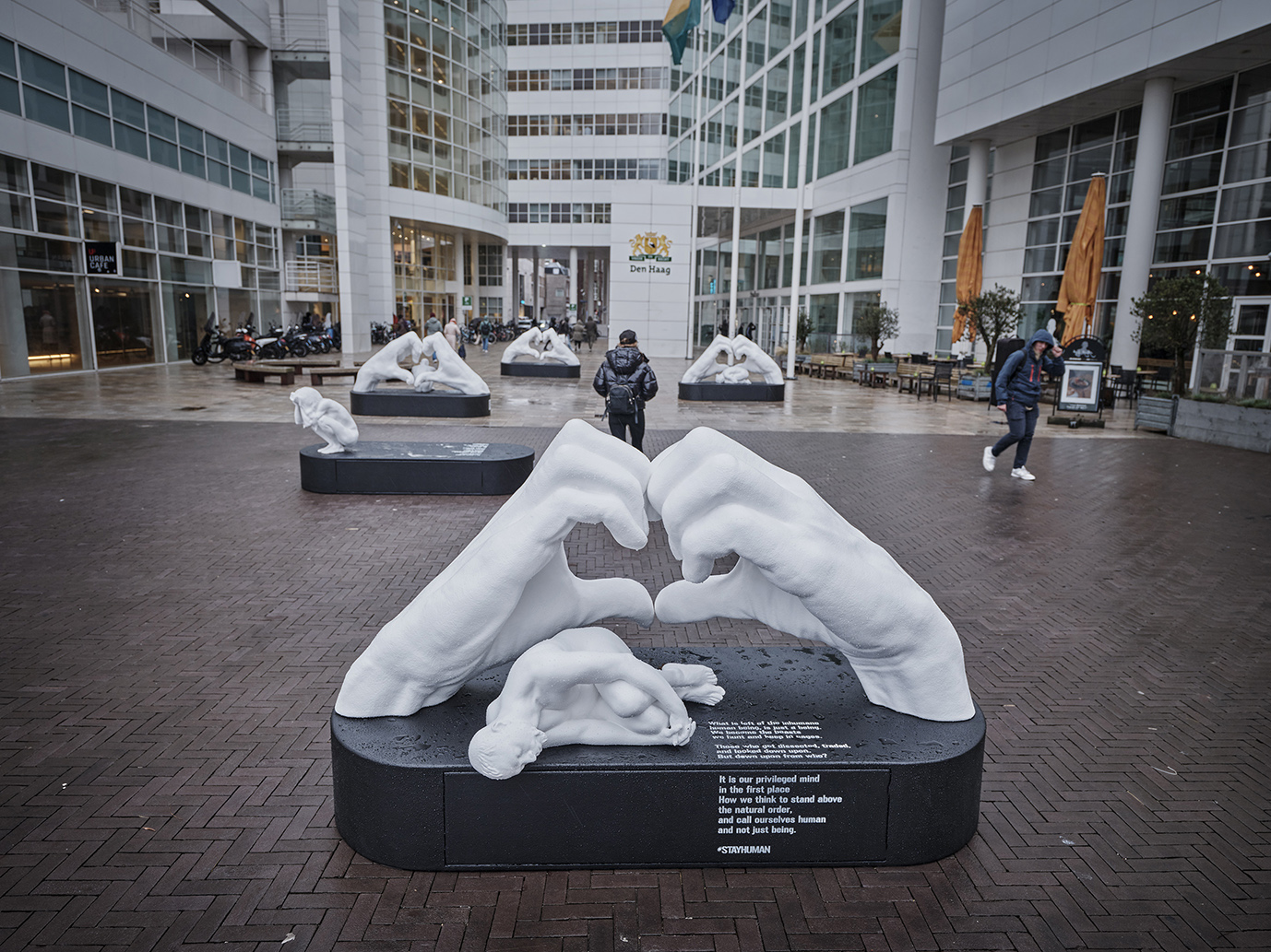 Het reizende kunstproject #StayHuman van kunstenaar SAZZA biedt een ander perspectief. Waar mensen vaak worden teruggebracht tot een label, een mening of een kamp, laten deze sculpturen het tegenovergestelde zien: de mens in zijn puurste, meest kwetsbare vorm — zonder status, zonder masker, zonder bescherming. Ze vormen een indringende oproep om de menselijkheid te blijven zien, juist nu de menselijke maat onder druk staat.