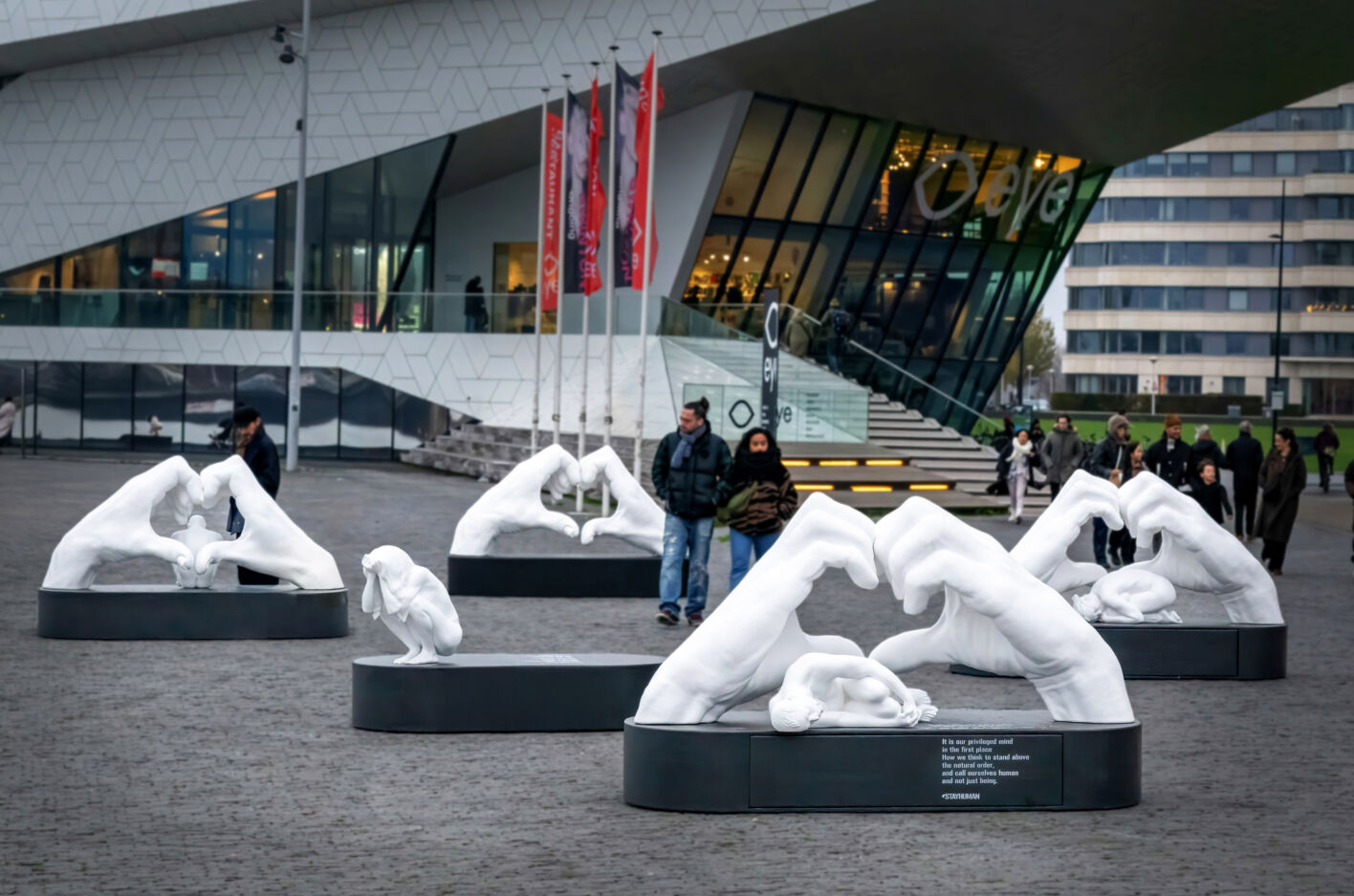 Het reizende kunstproject #StayHuman van kunstenaar SAZZA biedt een ander perspectief. Waar mensen vaak worden teruggebracht tot een label, een mening of een kamp, laten deze sculpturen het tegenovergestelde zien: de mens in zijn puurste, meest kwetsbare vorm — zonder status, zonder masker, zonder bescherming. Ze vormen een indringende oproep om de menselijkheid te blijven zien, juist nu de menselijke maat onder druk staat.